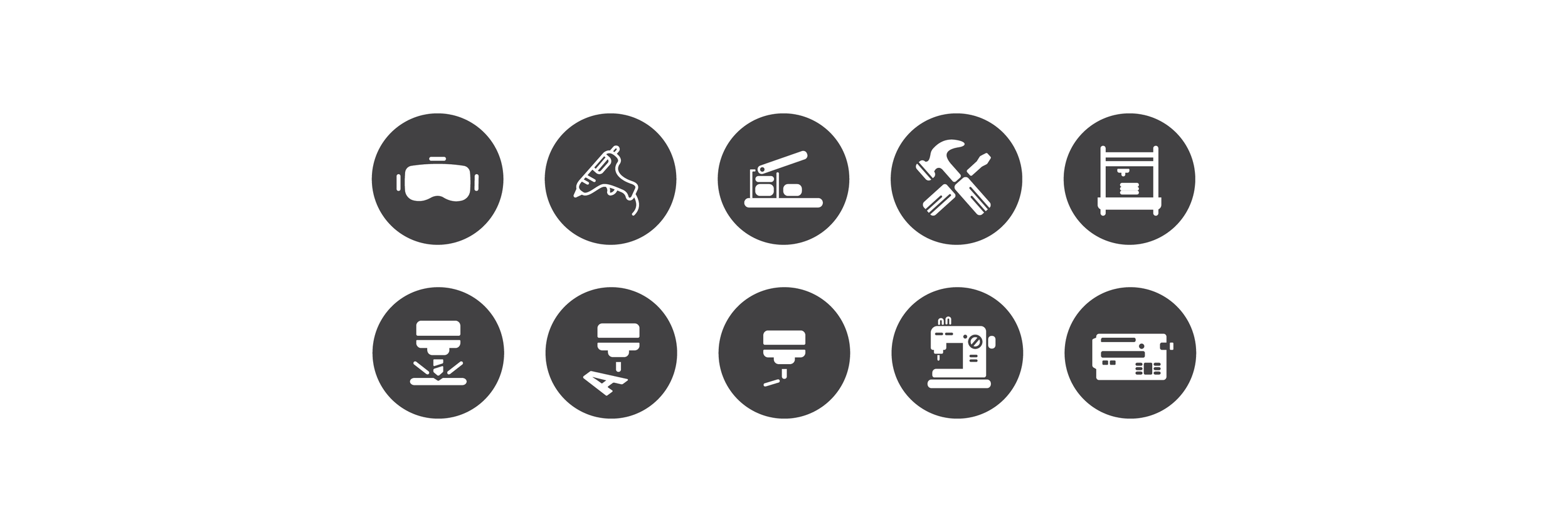 A new addition to the library space is the StingerStudio Makerspace, a collaborative space where students can bring their ideas to life through 3D printers, laser cutters, and more! Icons were needed in the website page to visualize what equipment and services they offered. These icons required that they follow the established style of being simplified to align with their current icons.